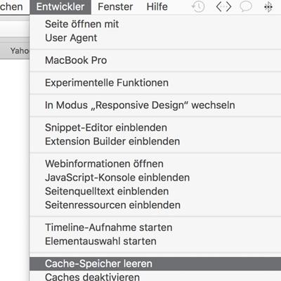 Die schnellste Möglichkeit den Cache zu leeren, ist die Verwendung der Tastenkombination [CMD] + [ALT] + [E].
