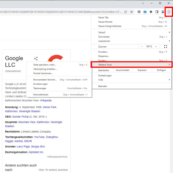 - Anschließend wählen Sie die Funktion "weitere Tools" aus.