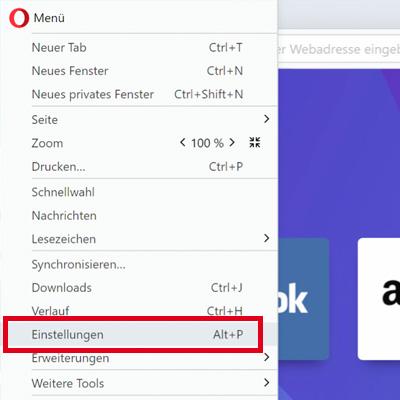 Auch beim Browser Opera kann die Funktion "Browserdaten löschen" über das Hauptmenü aufgerufen werden. Diese Funktion finden Sie ganz einfach mit dieser Schritt-für-Schritt Anleitung: