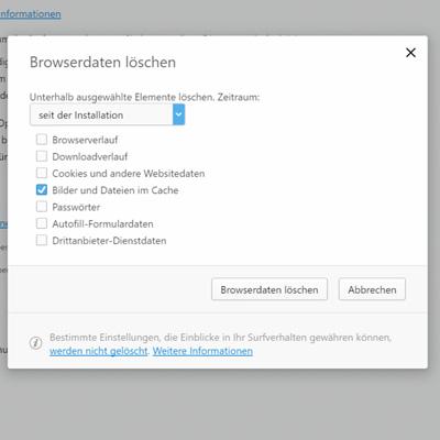 - Wählen Sie hier den Zeitraum "seit der Installation", um den kompletten Browser Cache zu leeren.